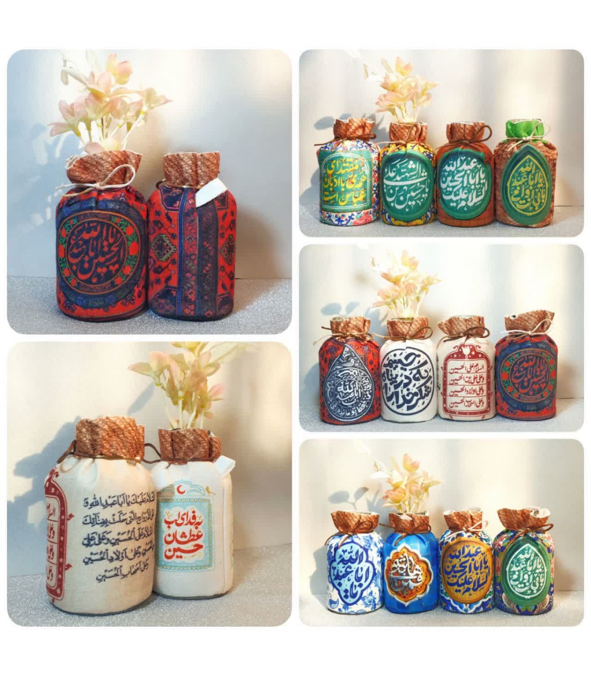 گلدان مخملی پایه کوتاه محرمی با بدنه شیشه‌ای، چاپ درجه‌یک، قابل شست‌وشو و قابل استفاده به‌صورت آویز یا رومیزی؛ ارسال رندومی، بسته‌بندی وکیومی. جهت سفارش سریع تر و دریافت تخفیف ویژه لطفا از طریق پیام رسان ایتا اقدام...