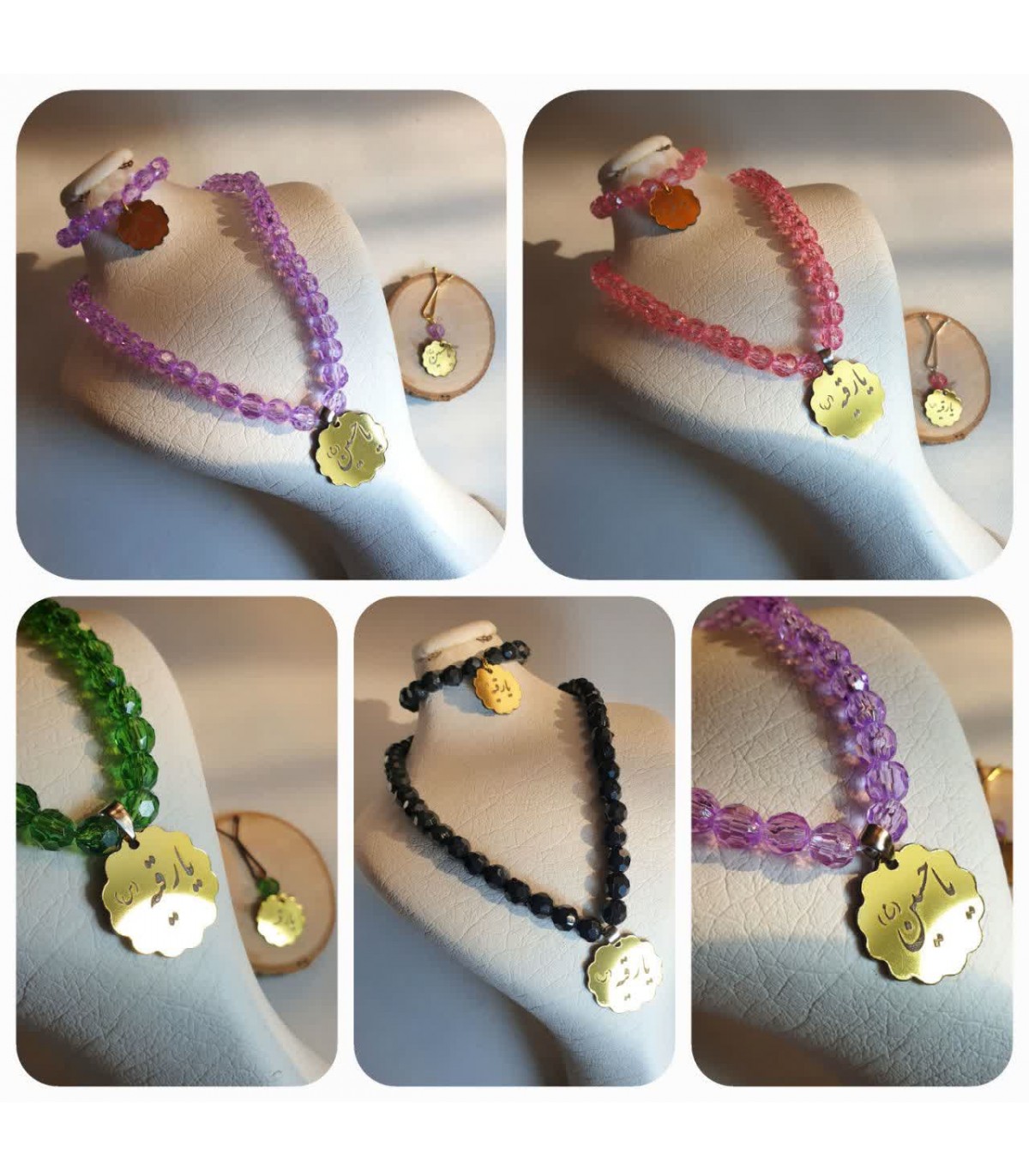 ست سهتکه کریستالی شامل گردنبند، دستبند و گیره با طراحی مولتیدار؛ بستهبندی تکسلفون، عرضه در طرحهای جور و متنوع.