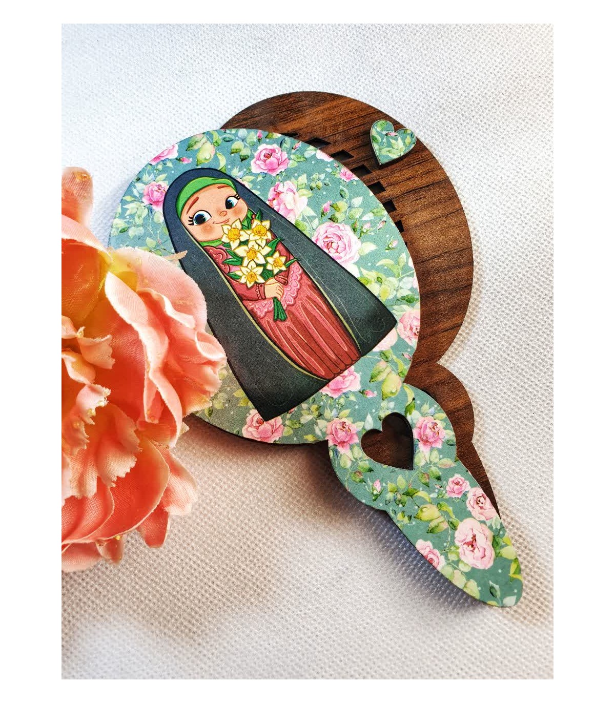 آینه و شانه چوبی دخترانه، مجموعه‌ای شکیل و کاربردی برای استفاده روزمره و هدیه. هر مجموعه شامل آینه دستی با قاب چوبی و شانه چوبی هماهنگ است که با طرح‌ها و نقوش متنوع و مناسب سلیقه‌های نوجوانان و جوانان تولید می‌شود. هر عدد به‌صورت تک‌سلفون بسته‌بندی می‌شود و عرضه در بسته‌های ۳۵ تایی مناسب فروش عمده، پک‌های هدیه و غرفه‌های سوغات است.