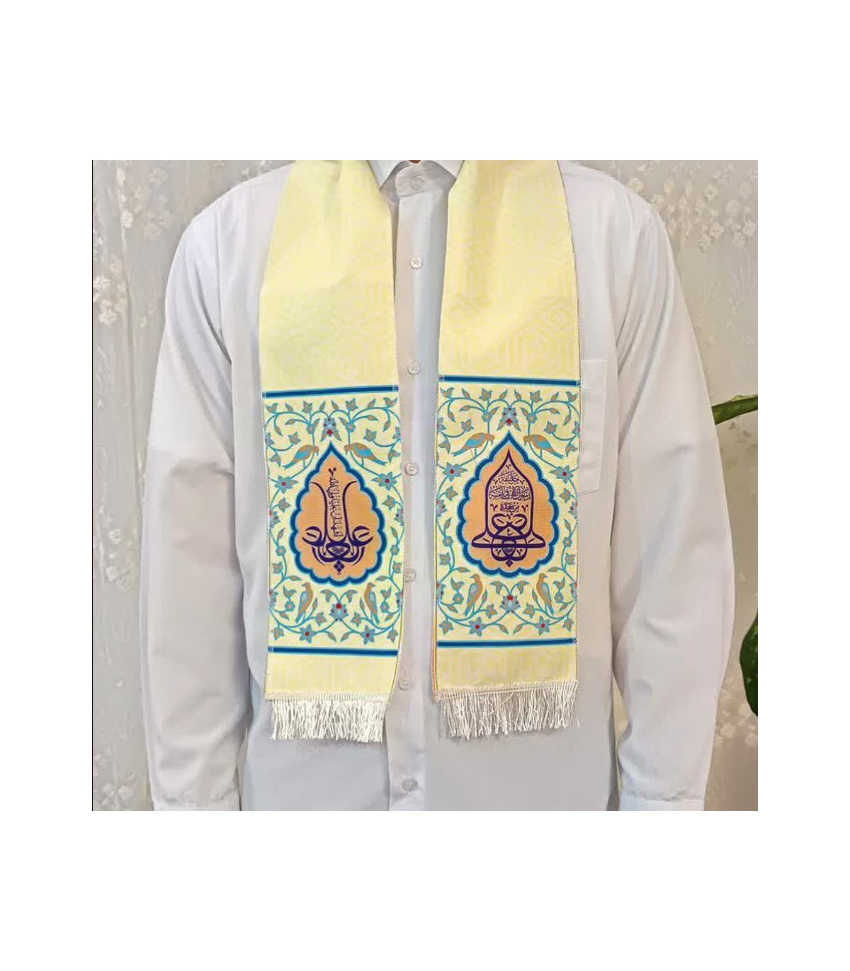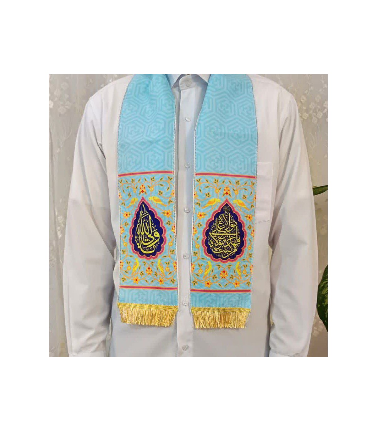 شال مخمل آستر دار 130×14 سانتیمتر از مخمل پورشه درجه یک؛ چاپ سابلیمیشن، دوردوزی و ریشهدوزی؛ تکسلفون و قابل شستوشو.