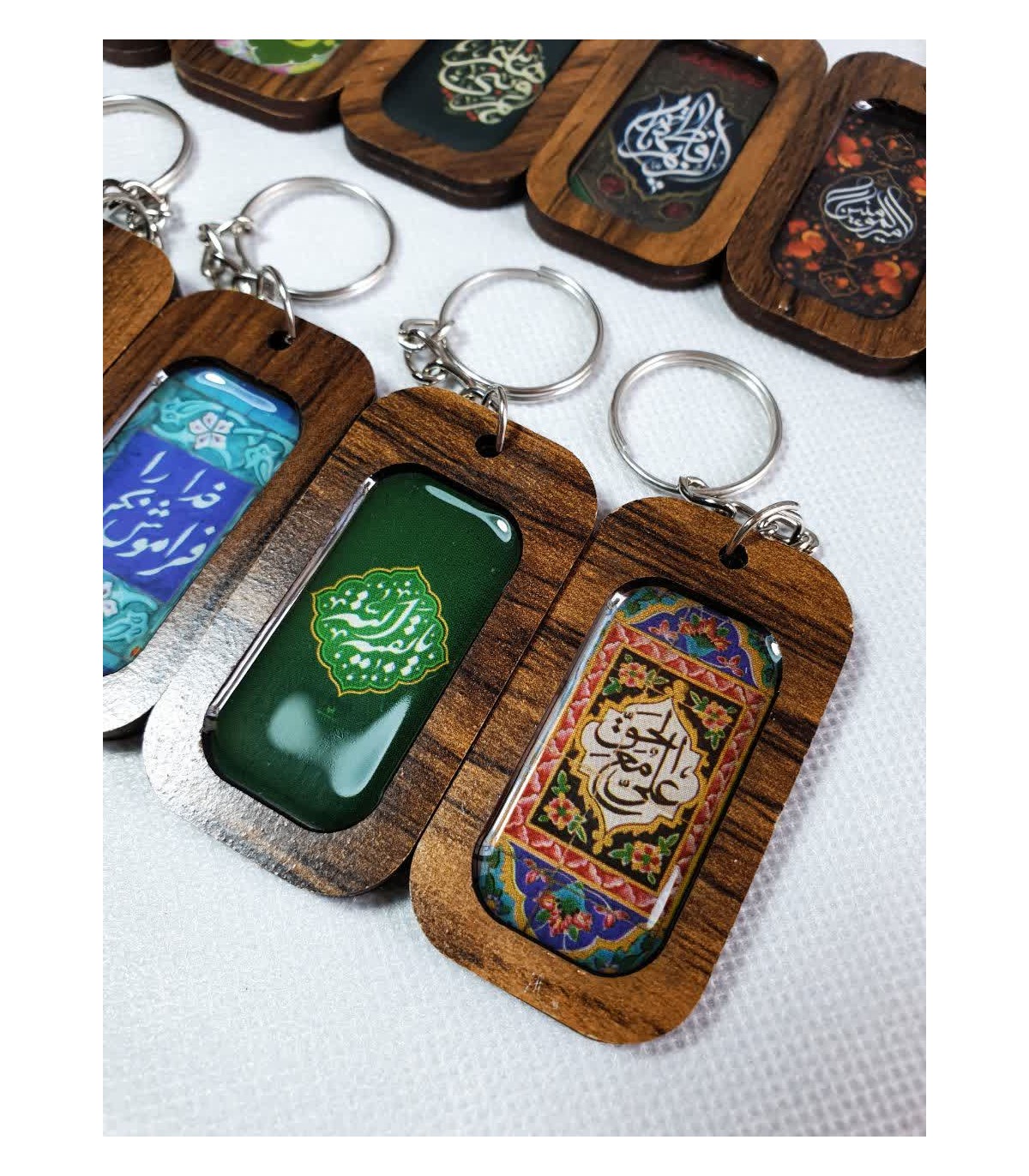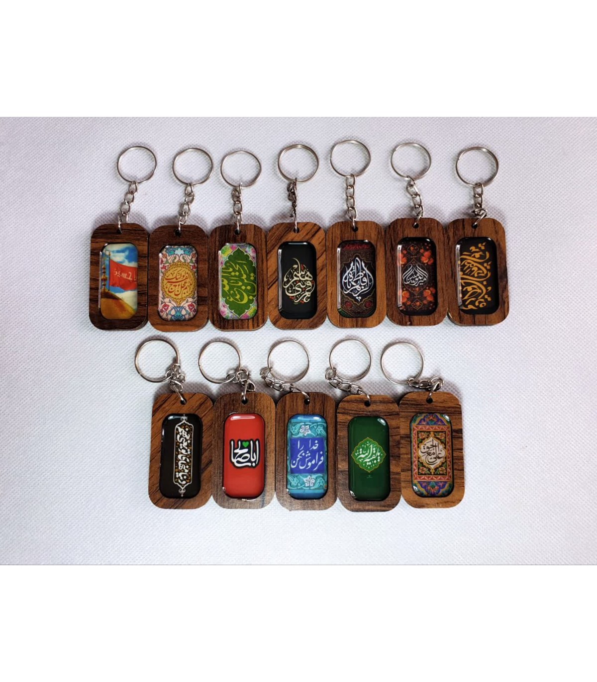 جاکلیدی رزین با طرحهای متنوع اهلبیت و شهدا؛ قطعهای سبک، جلوهدار و مناسب برای عرضه فروشگاهی، هدیه و پکهای فرهنگی. هر عدد با پلاک رزینی و حلقه استاندارد تهیه شده و ترکیبی از جلوه بصری و کاربری روزمره را ارائه میدهد.
