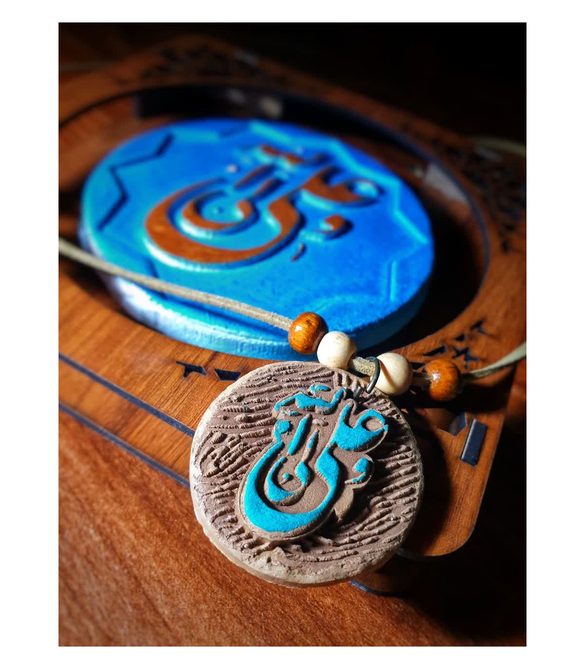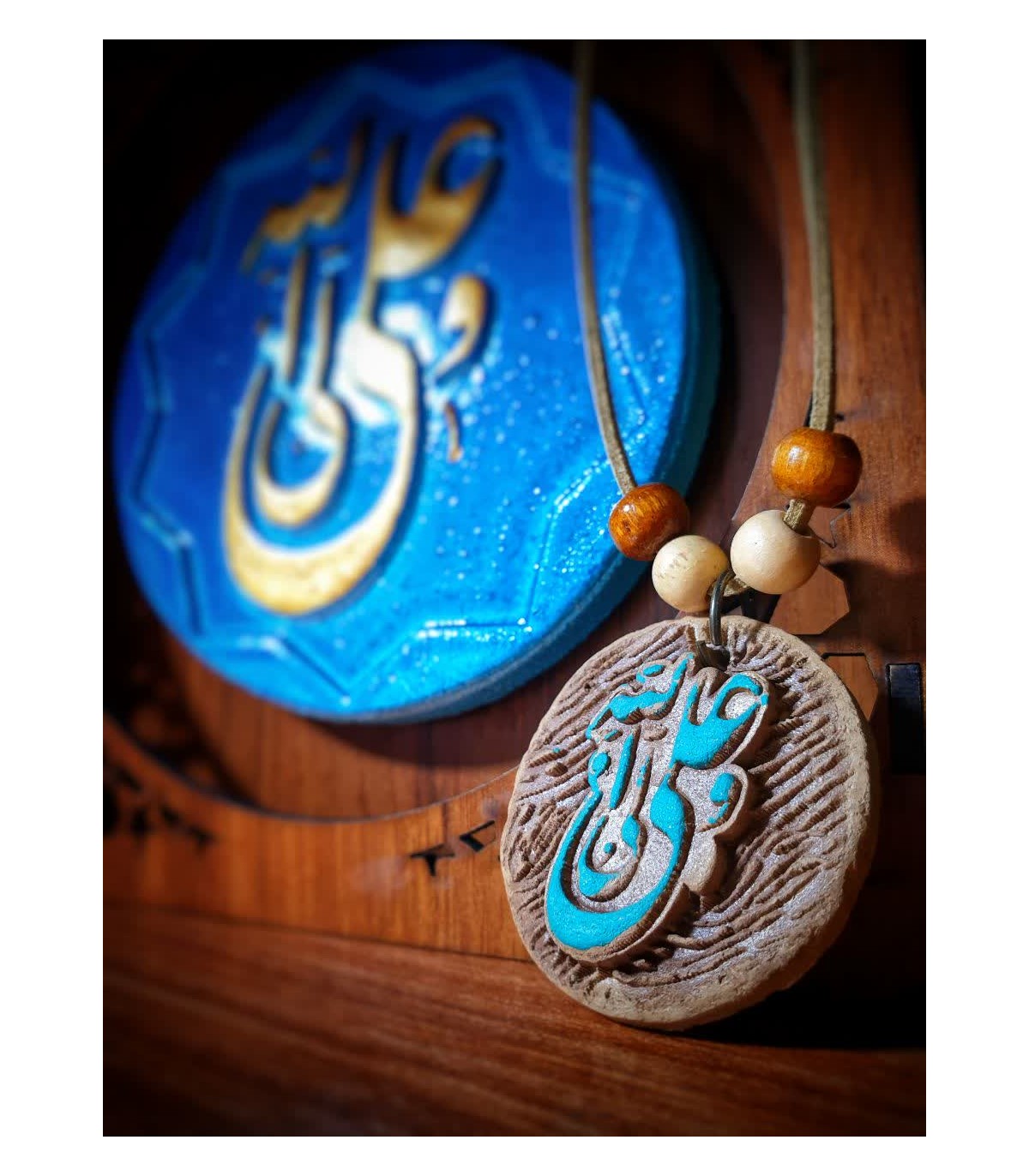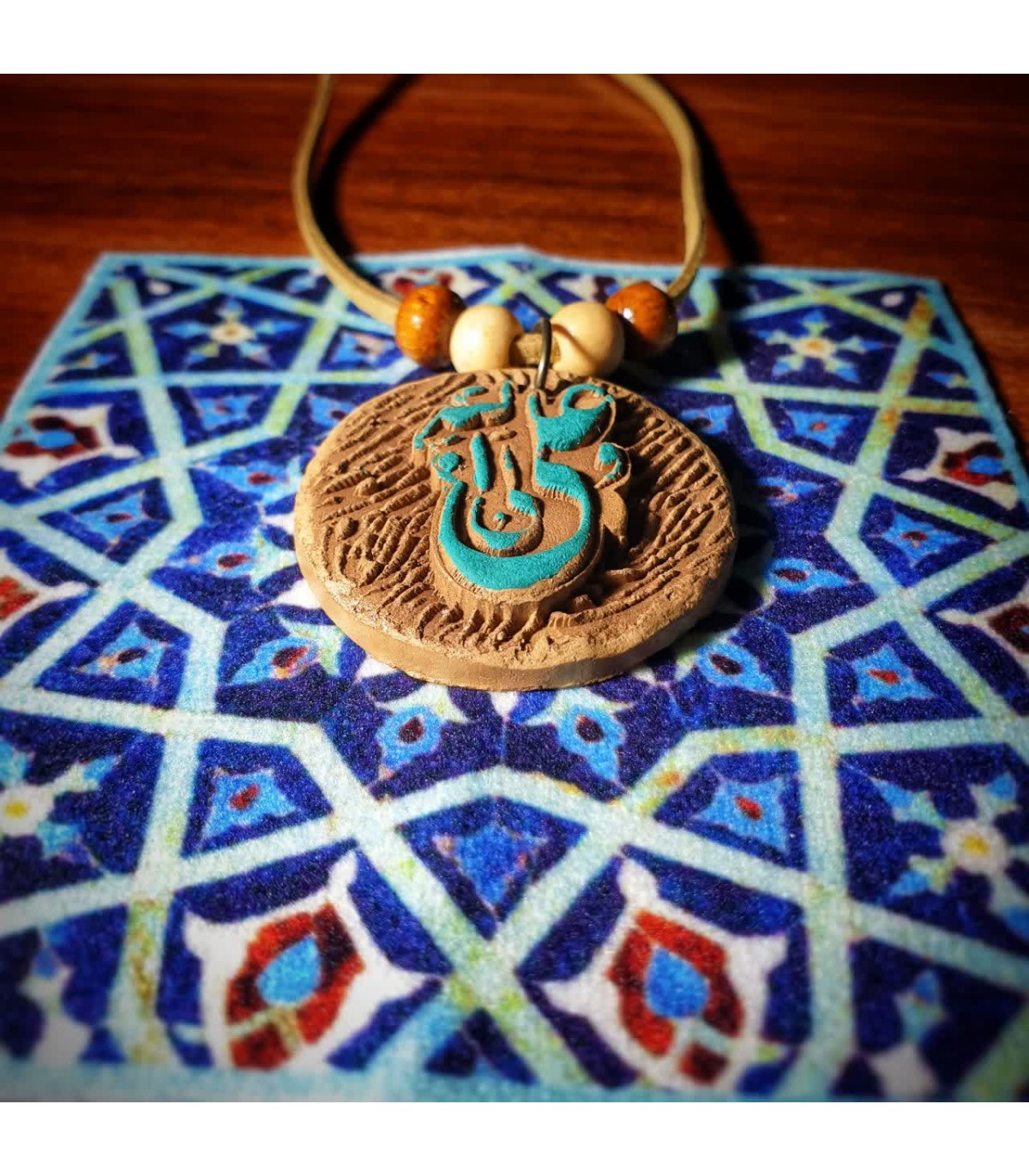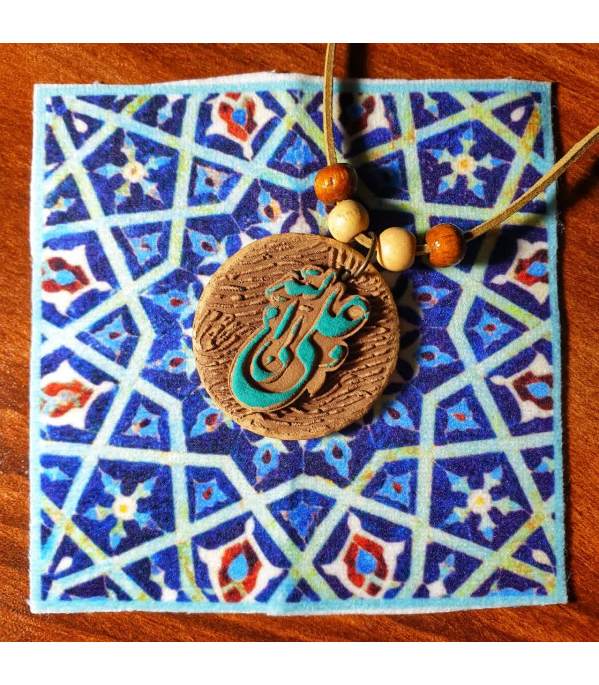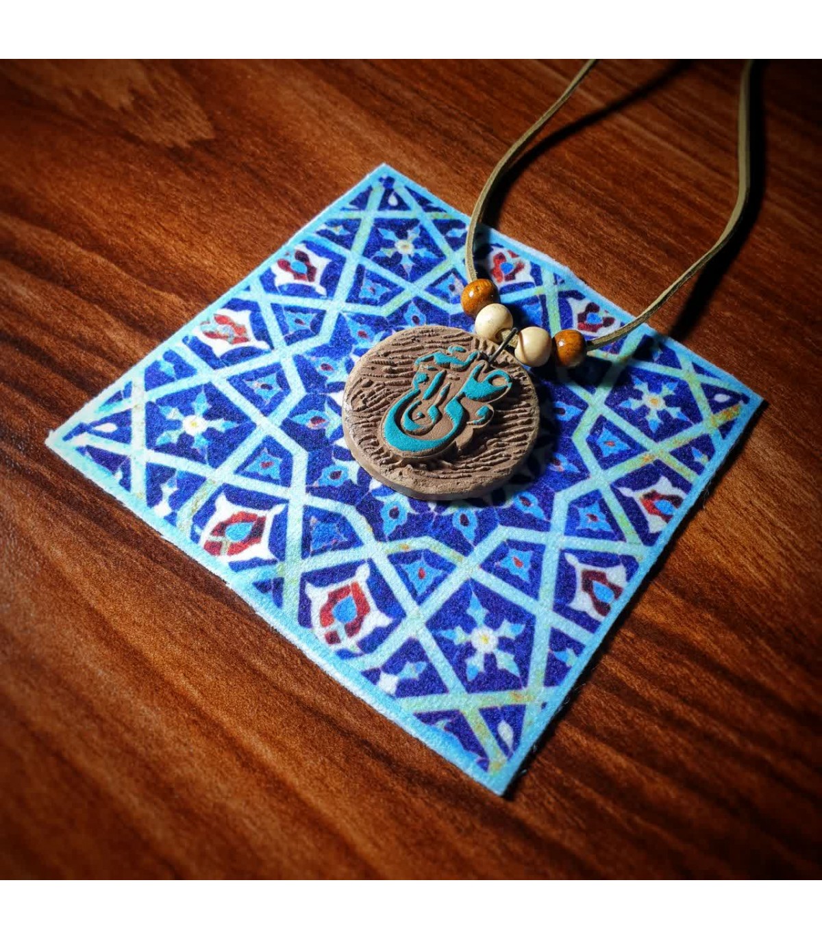 رومانتویی نقش‌برجسته سفالی با ذکر مبارک «امیرالمومنین (ع)»؛ ترکیبی از هنر سنتی و طراحی کاربردی برای پوشیدنی‌های معنوی. بدنه نقش‌برجسته سفالی با رنگ‌آمیزی هنری دستی جلوه‌ای گرم و نفیس دارد، بند جیر نرم حس راحتی به همراه می‌آورد و قفل طوطی ایمن، نگهداری یا استفاده روزمره را ساده می‌کند. هر قطعه در تک‌جعبه عرضه می‌شود و مناسب هدیه مذهبی، یادبود و استفاده شخصی است.